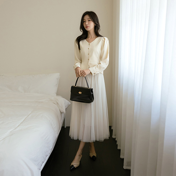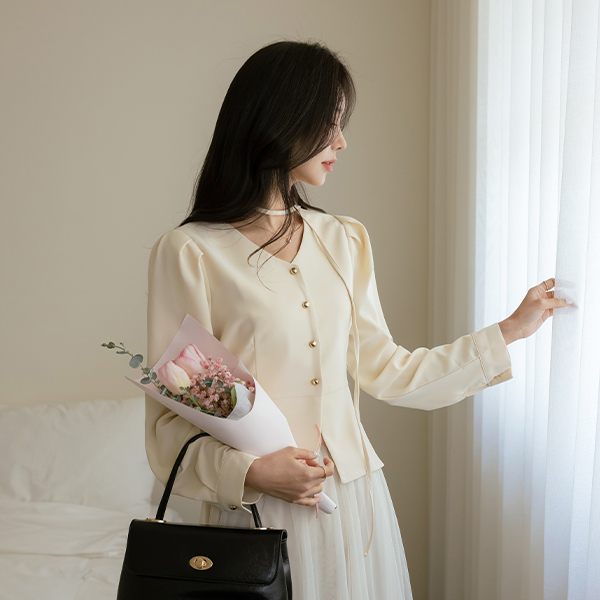 Loel 荷叶边 线条 后面蝴蝶结 罩衫