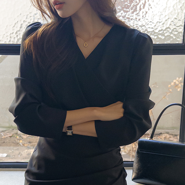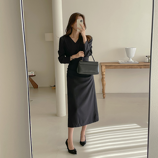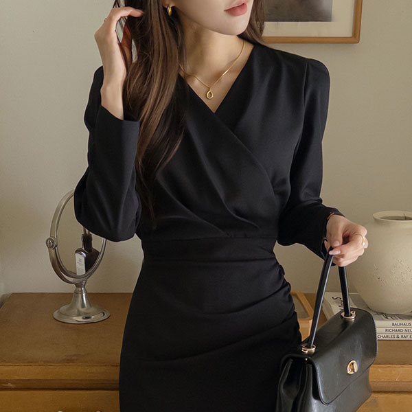 苗条的 覆盖 褶皱 线条 扣子 弹力 连衣裙