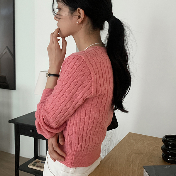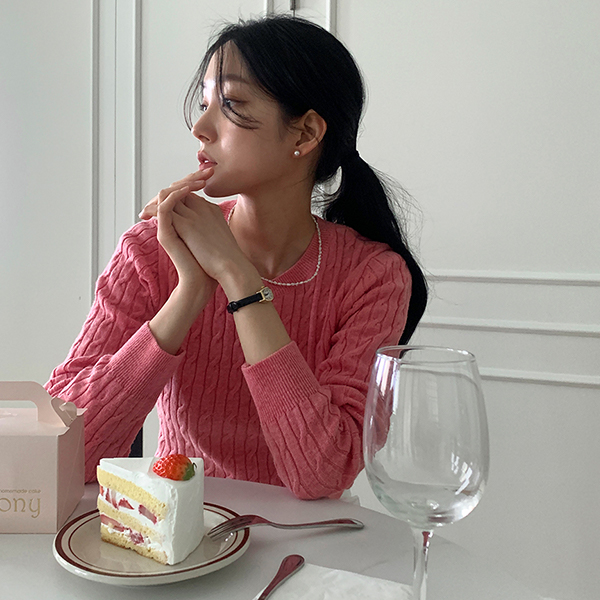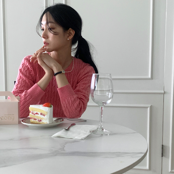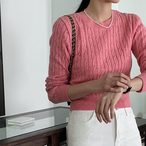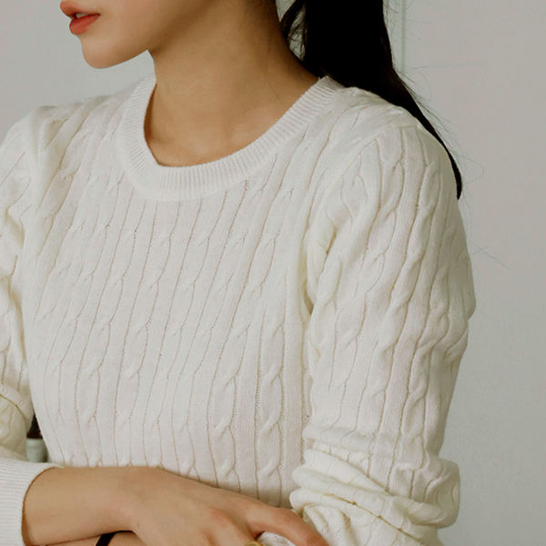 日常 圆领 缆绳 图案 羊毛 针织衫