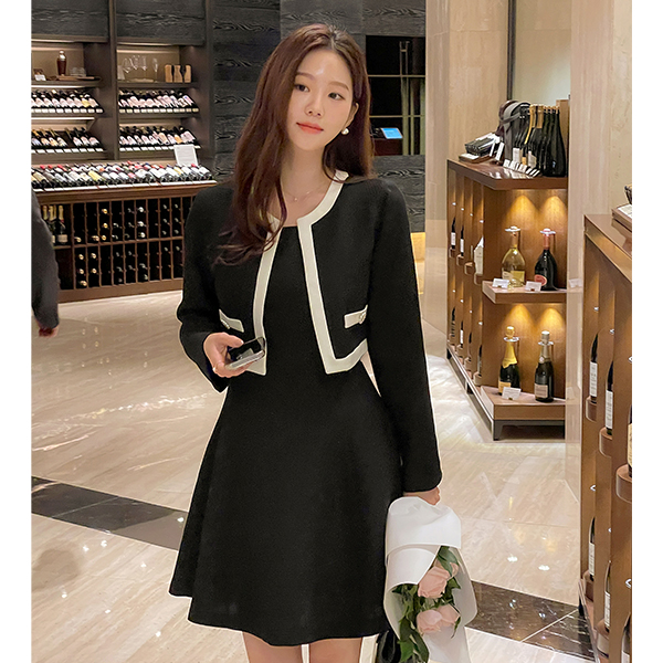 夹克 层叠 两件套 风格 粗呢 连衣裙