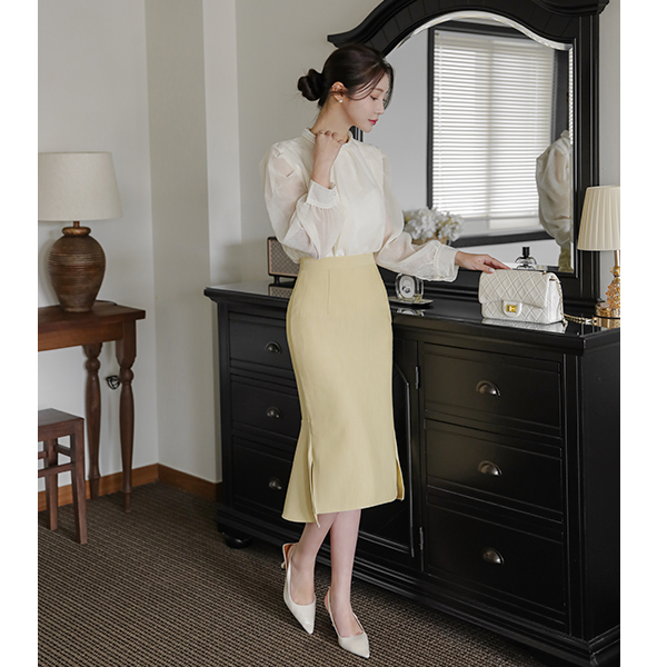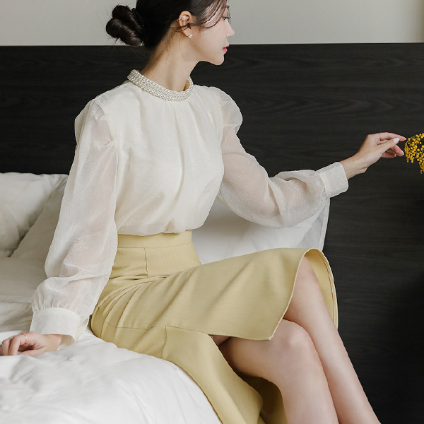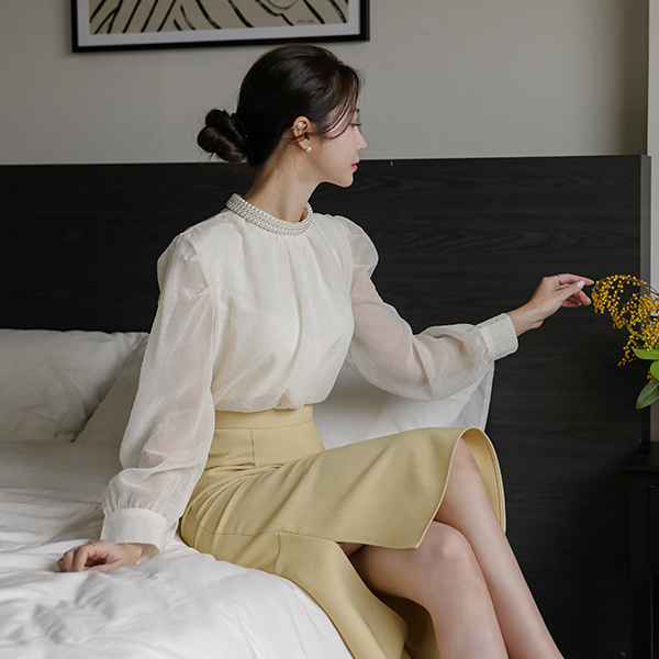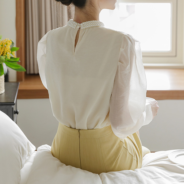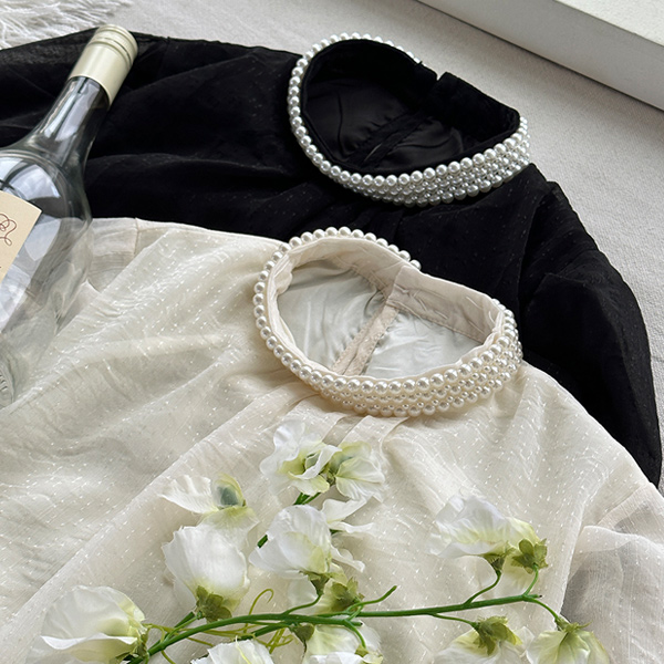 优雅 珍珠衣领 泡泡袖 袖 罩衫