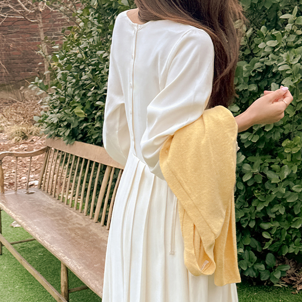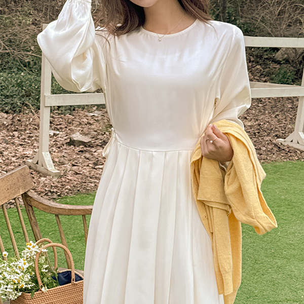 可爱 侧纽 蝴蝶结 褶边 双重 连衣裙