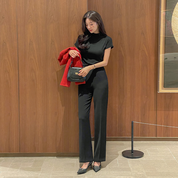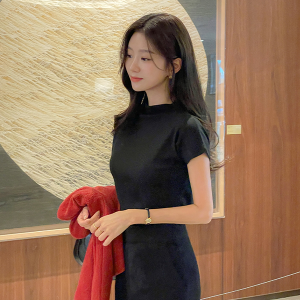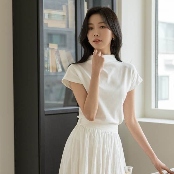 可爱 褶皱 褶皱 后侧松紧带 A字型 长款 裙子