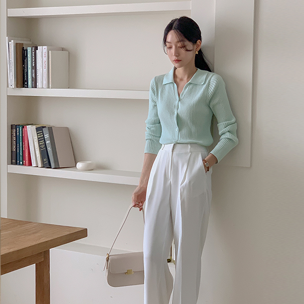 Macaron 颜色 条绒 领子 针织衫 开衫