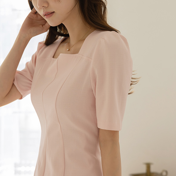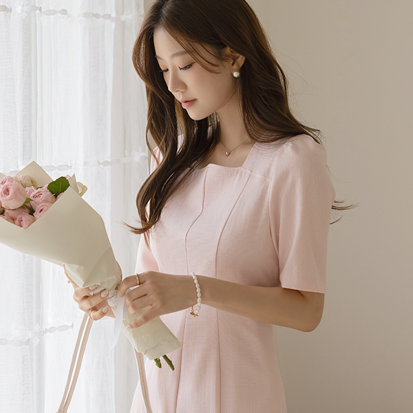 浪漫 颜色 夏天 粗呢 方领 连衣裙