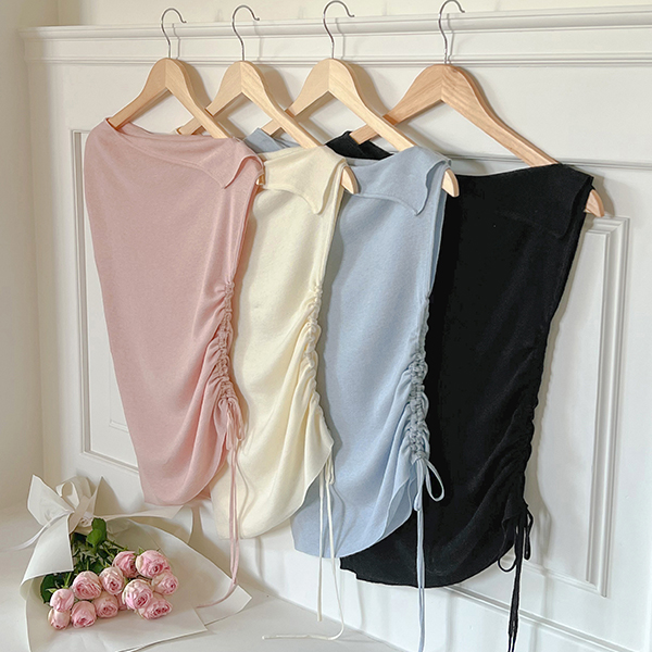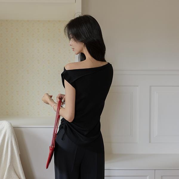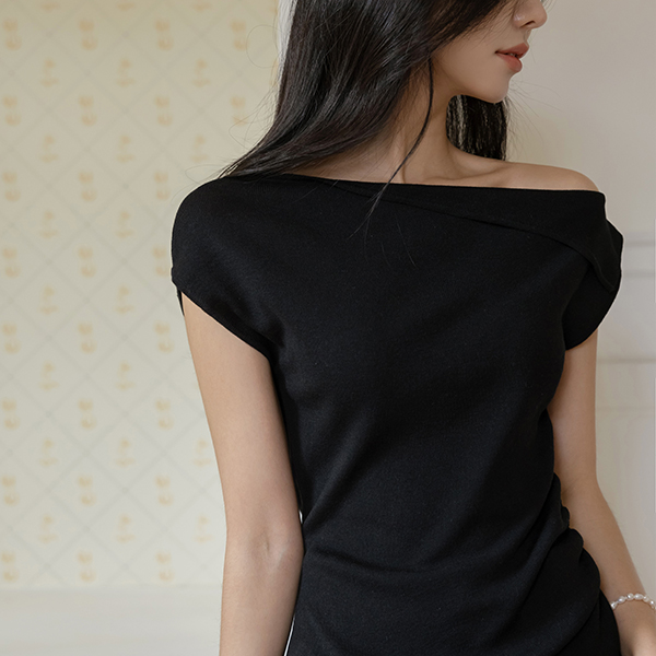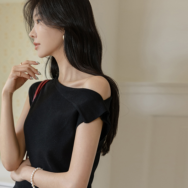 短上衣 露肩 开衩 褶皱 针织衫