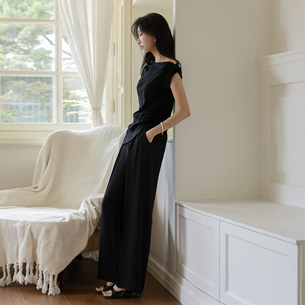 밀러 软绵绵软的 细褶 Set-up 宽松 宽松长裤