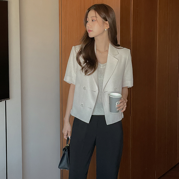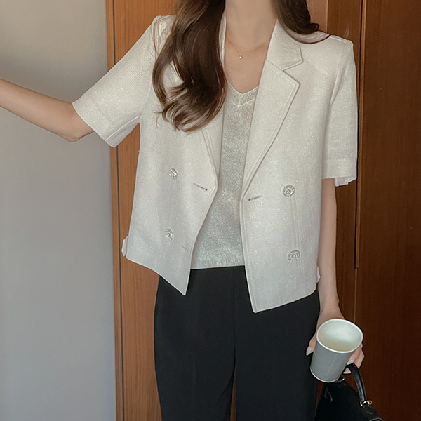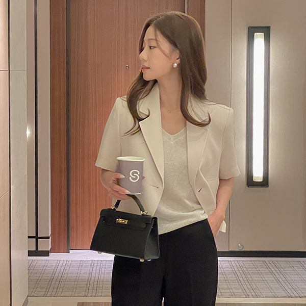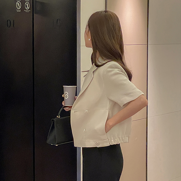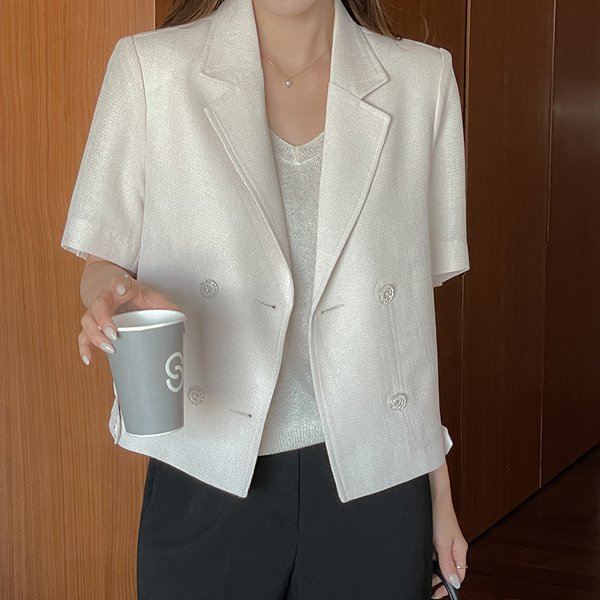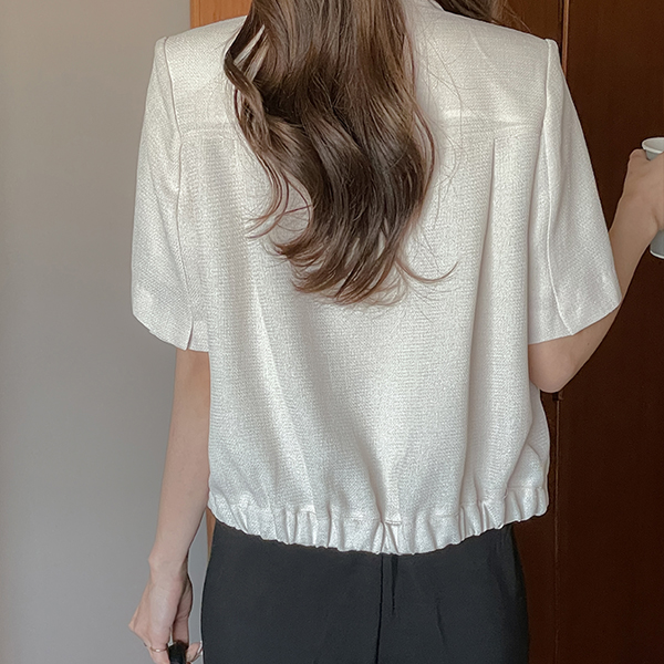 헤이즐 双 扣子 后侧松紧带 粗呢 夹克