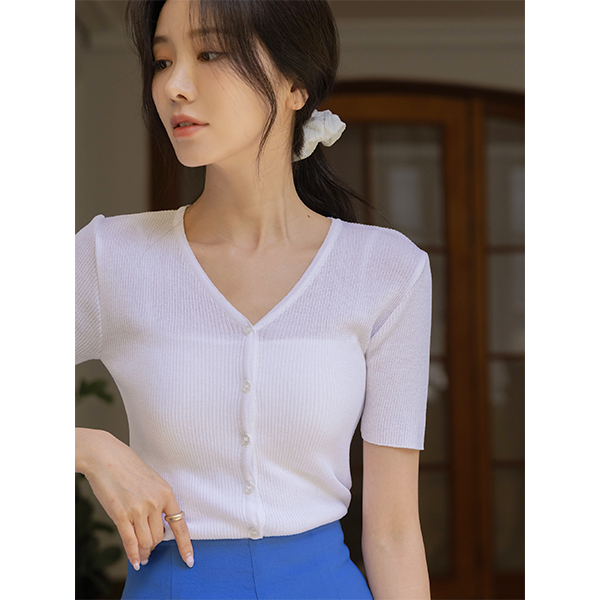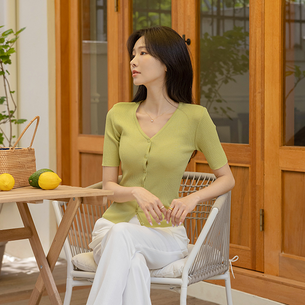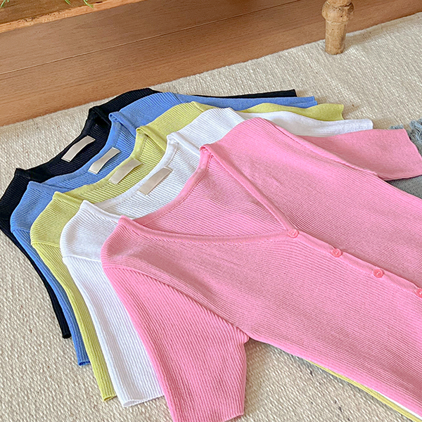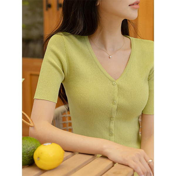 夏天 条绒 V字领 短袖 开衫