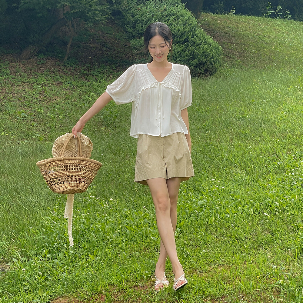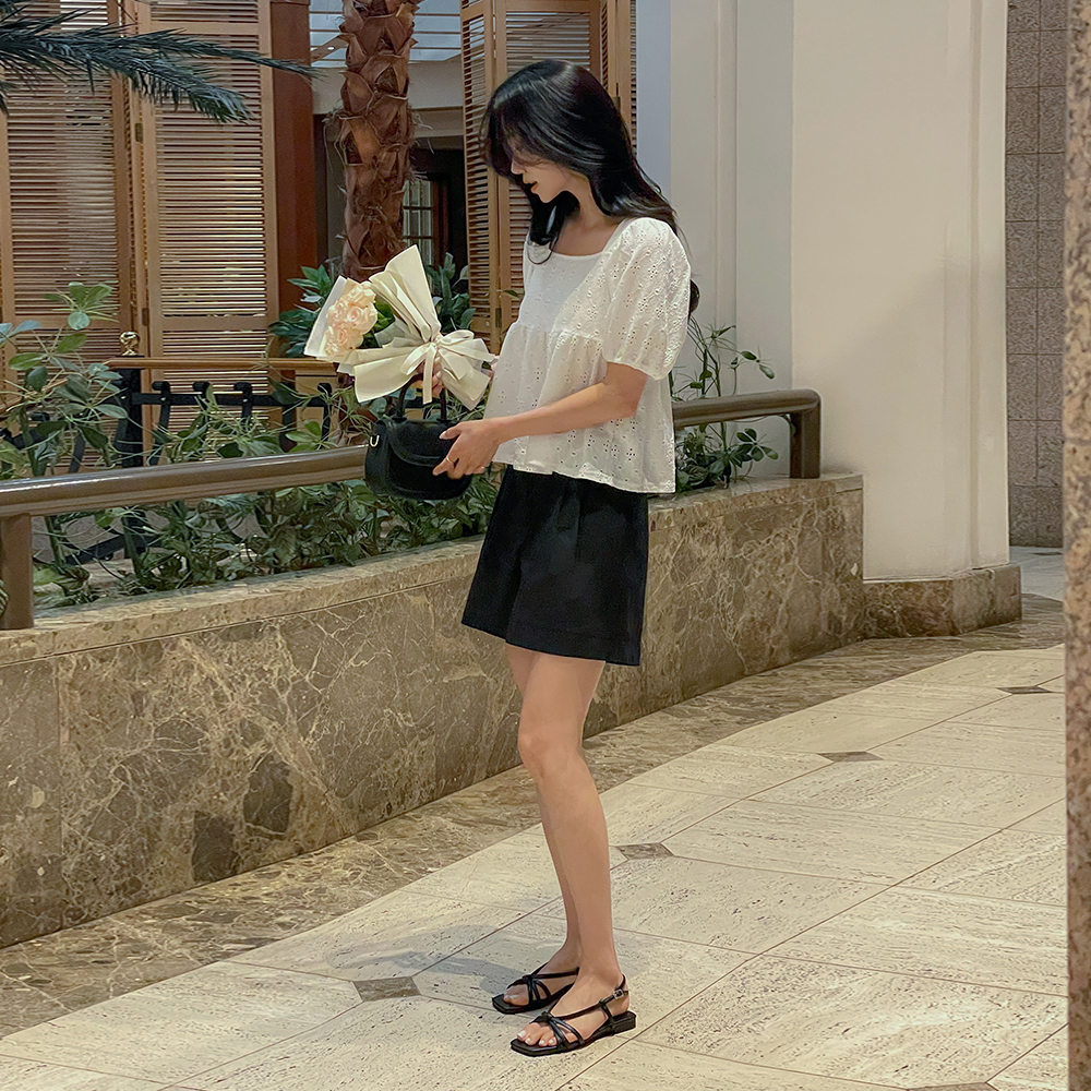 깔끔핏 细褶 短上衣 裤子