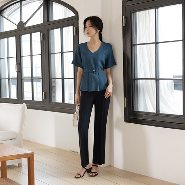 细褶 D戒指 腰带 (套装) 罩衫