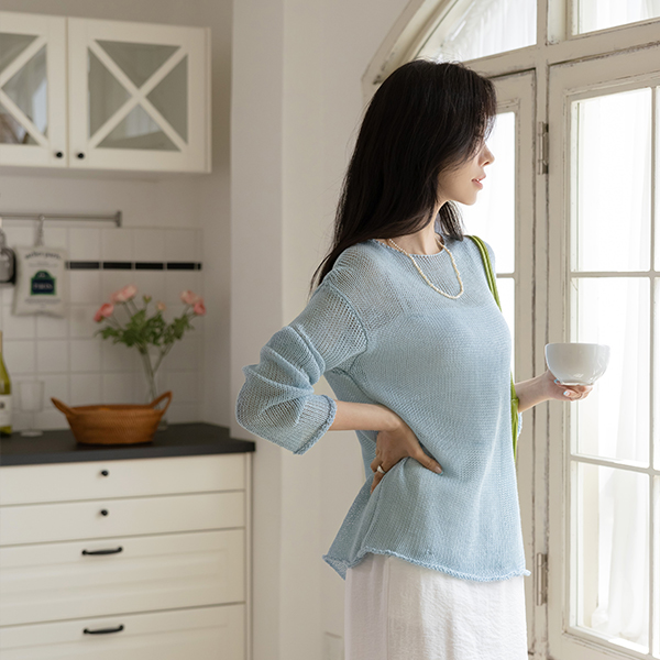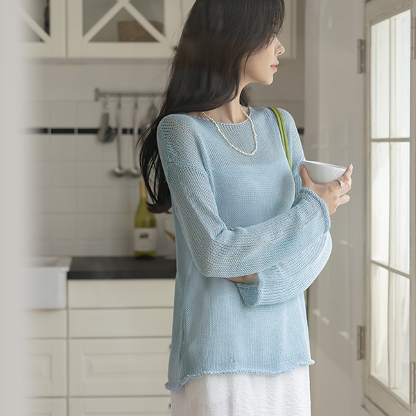 苗条 宽松 亚麻 夏天 针织衫