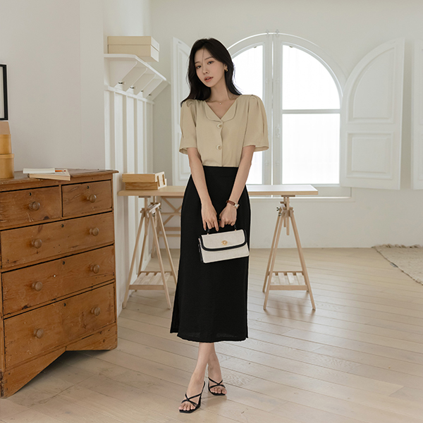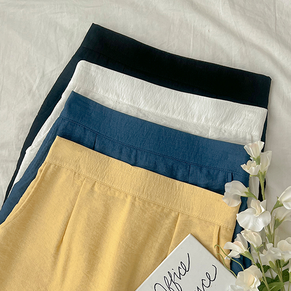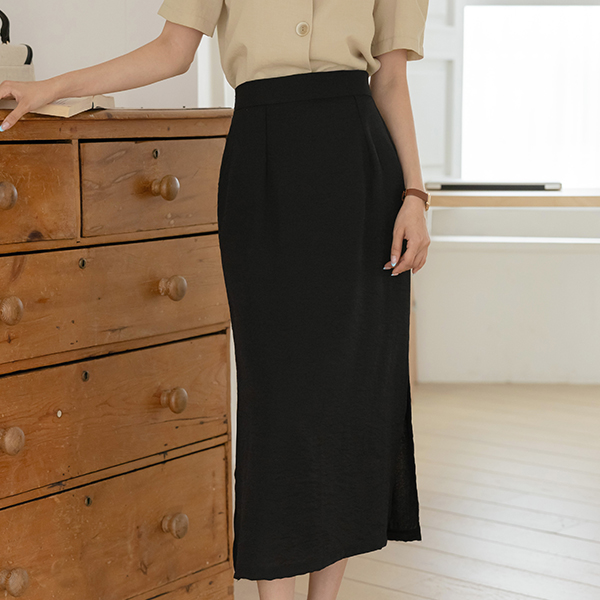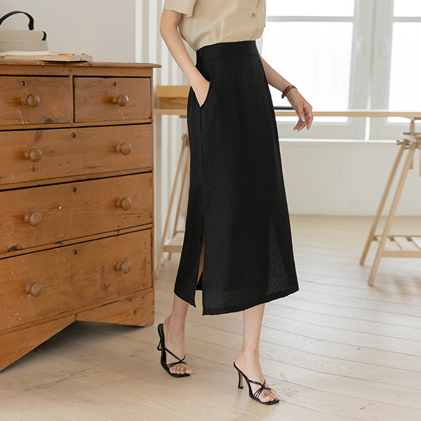凉爽 去皱纹 开衩 后侧松紧带 H字型 裙子