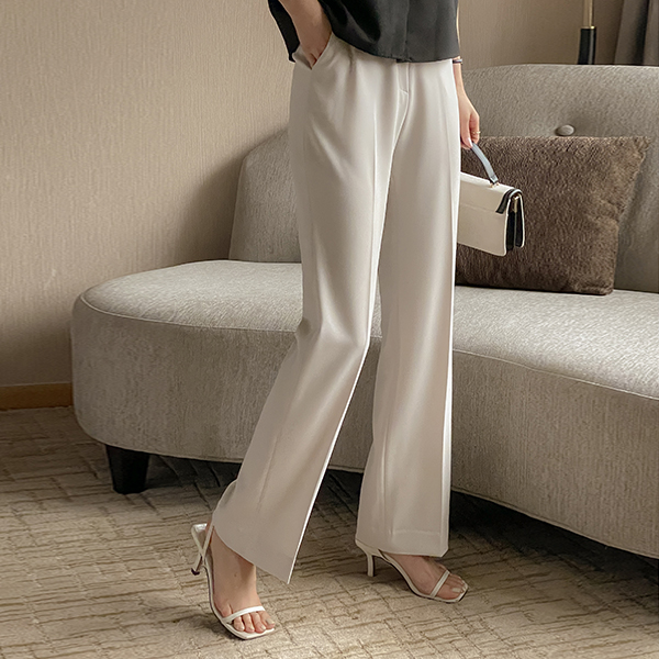 凉爽 后腰松紧带 一字型 宽松长裤