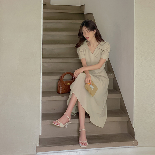 ODE 领子 裹身 褶皱 连衣裙