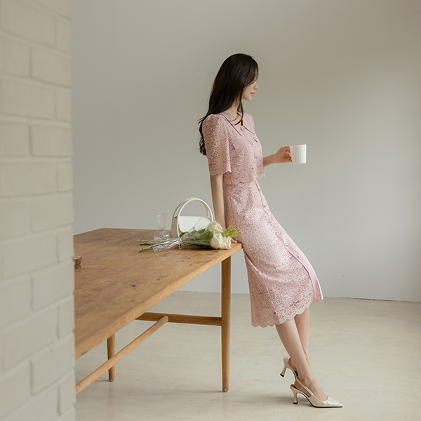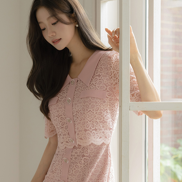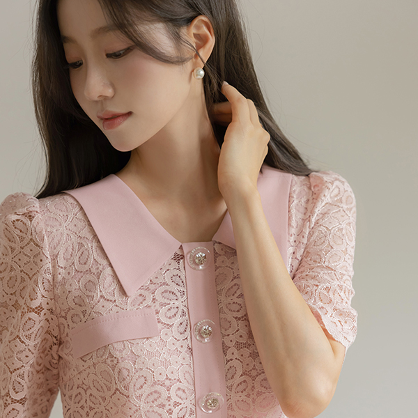 配色 领子 两件套 风格 蕾丝 连衣裙