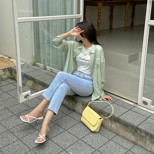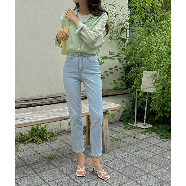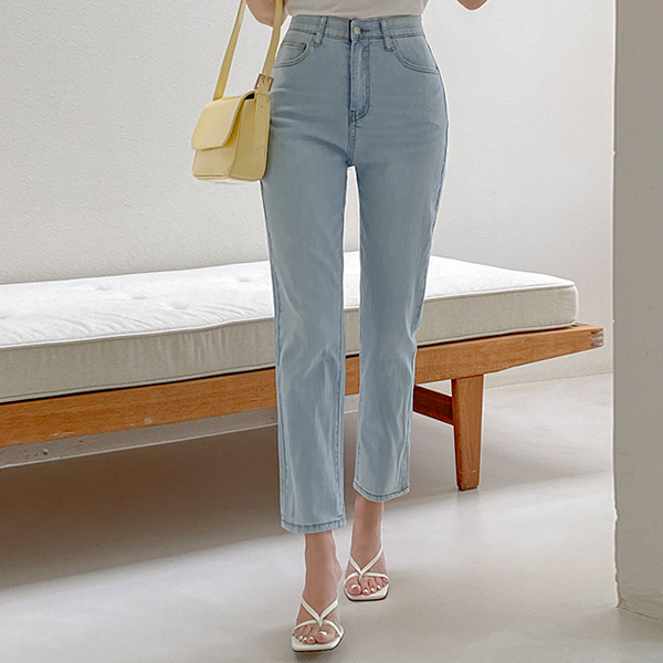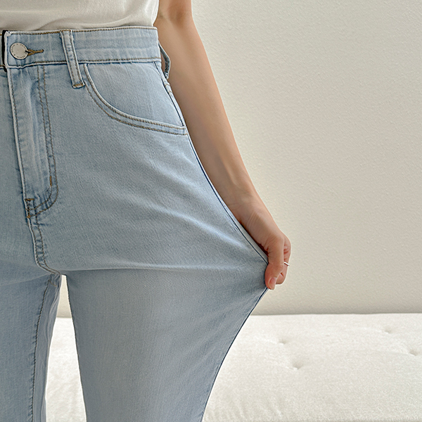 全长 修理 NO! 凉爽 一字型 弹力 牛仔色 裤子