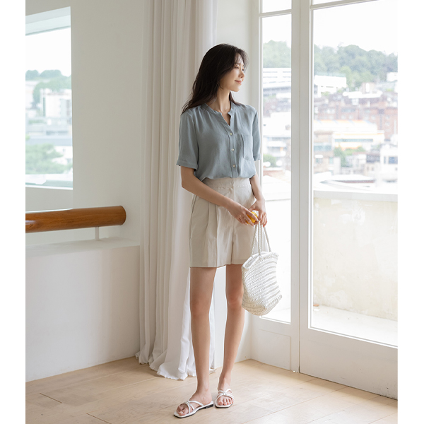 夏天 两种 细褶 后侧松紧带 棉 短上衣 裤子
