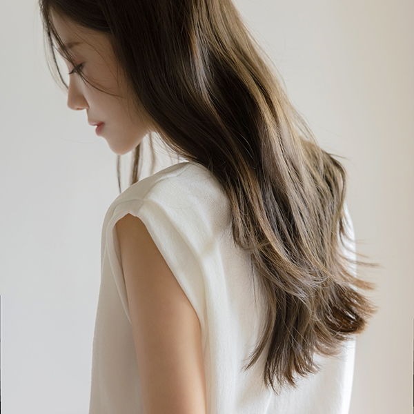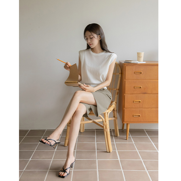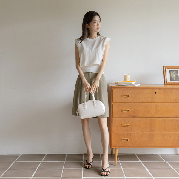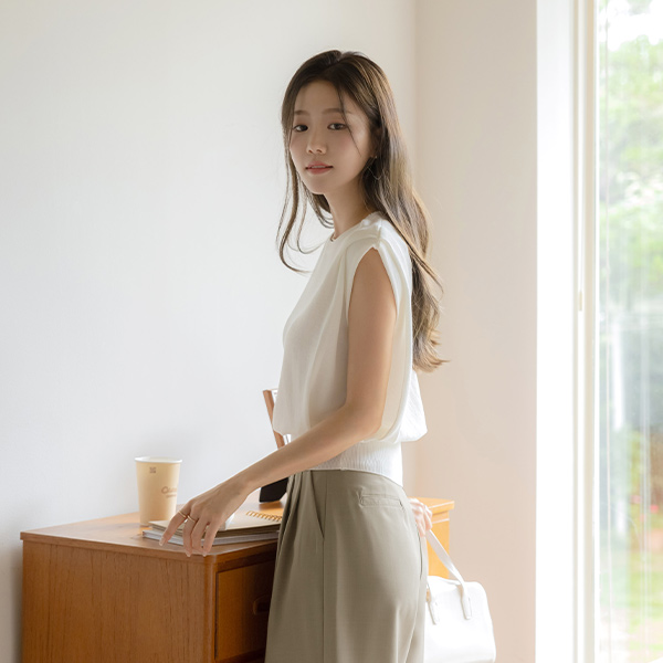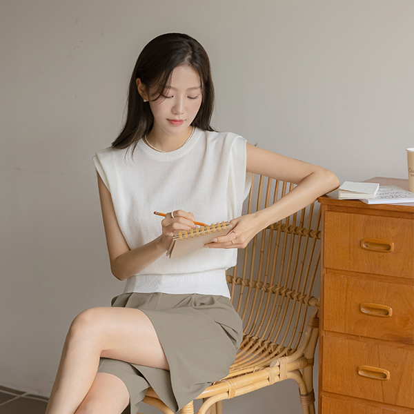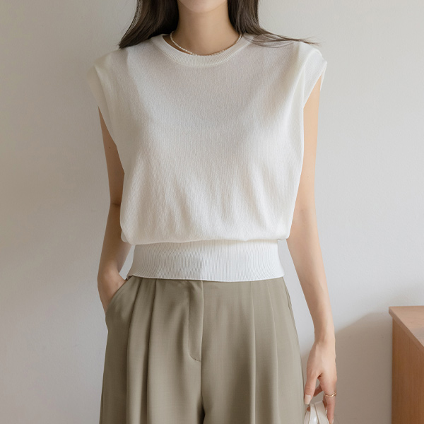 苗条的 覆盖 细褶 圆领 背心 针织衫