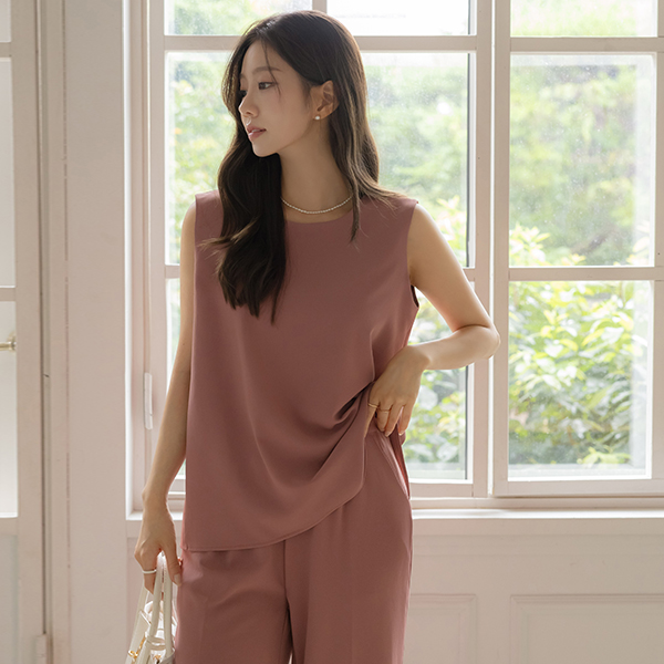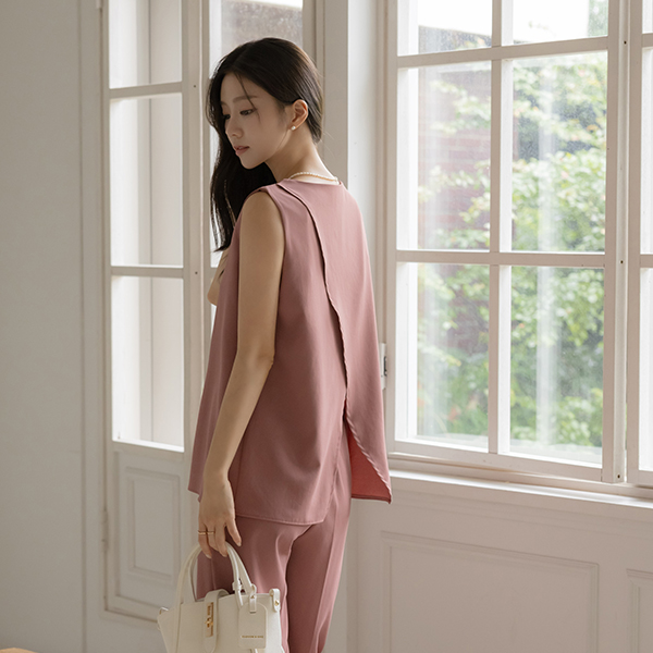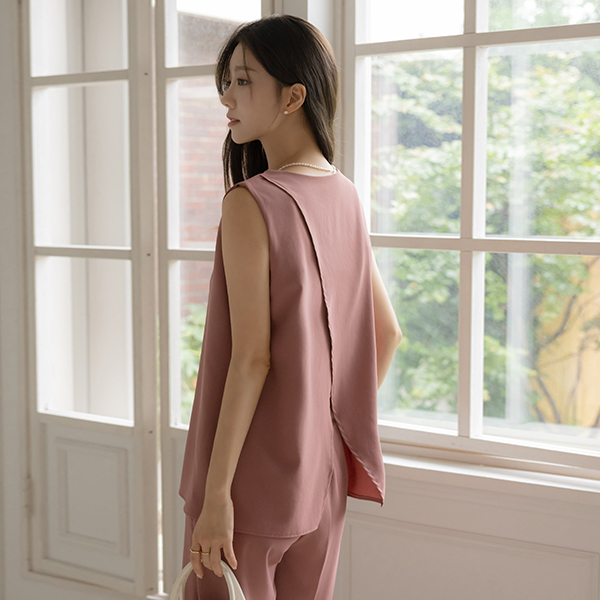 软绵绵软的 后 开衩 背心 罩衫