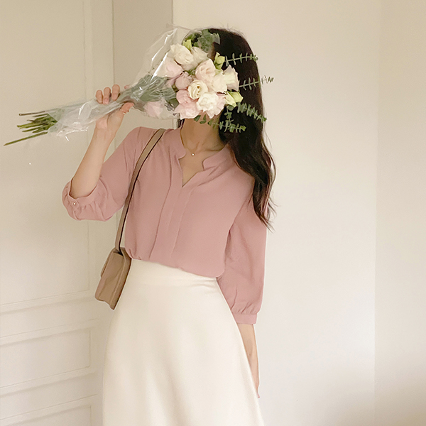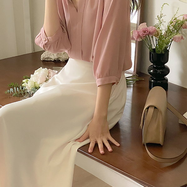 软绵绵软的 7分袖 官方网站 褶裥 线条 罩衫