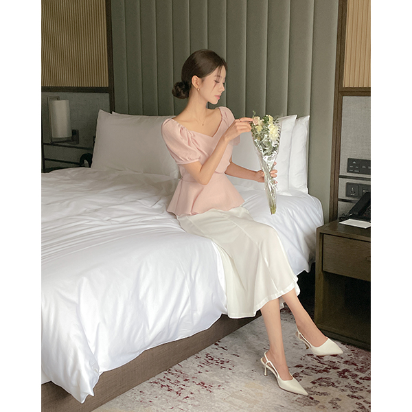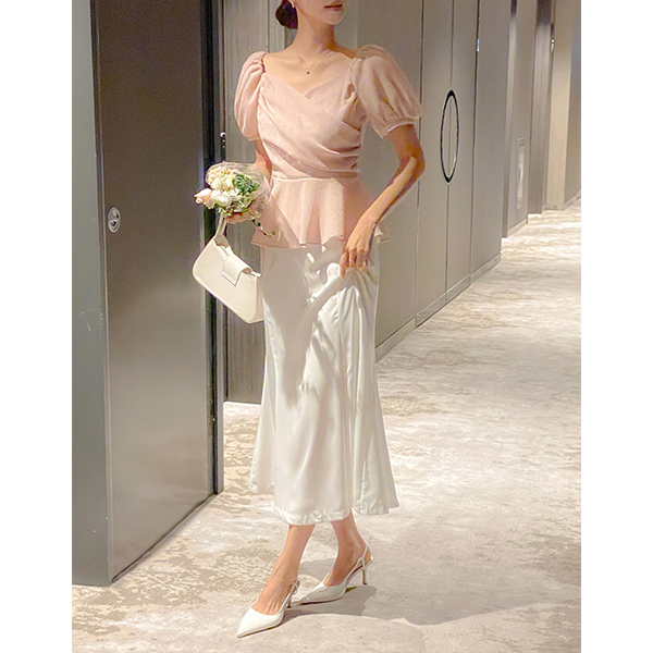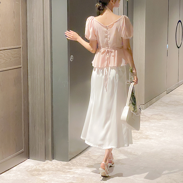 浪漫 뒷 蝴蝶结 荷叶边 去皱纹 罩衫