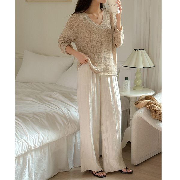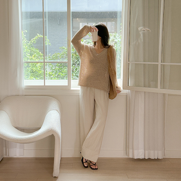 宽松 V领 长袖 针织衫