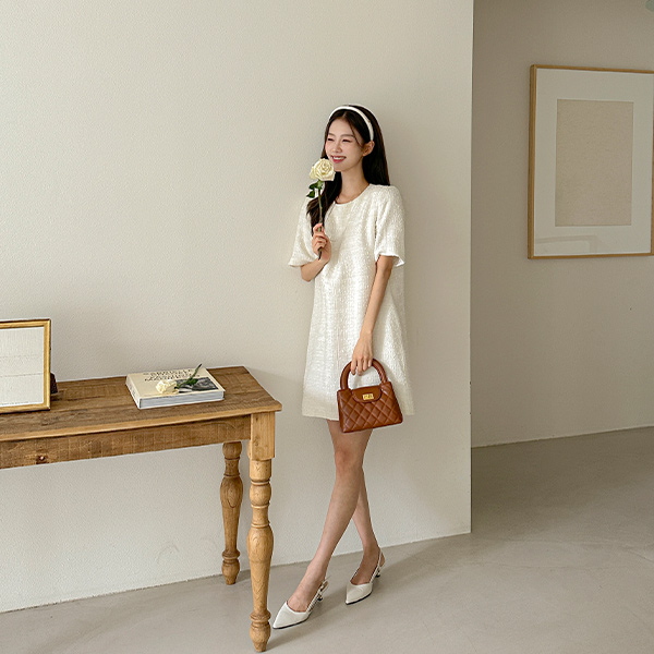 벨라 粗呢 迷你 连衣裙