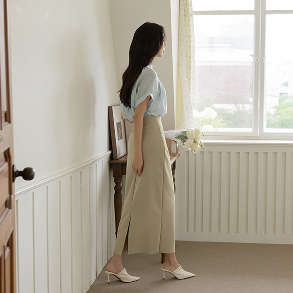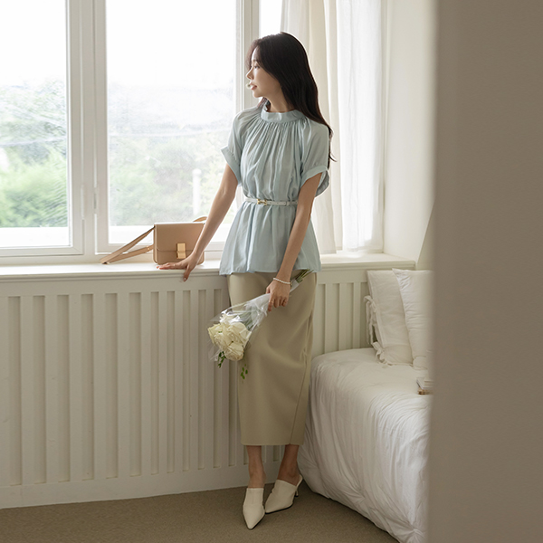 褶皱领 有光泽 短袖 罩衫