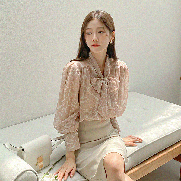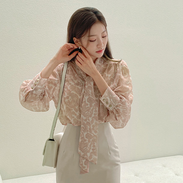 女性化的 领带 印染 罩衫
