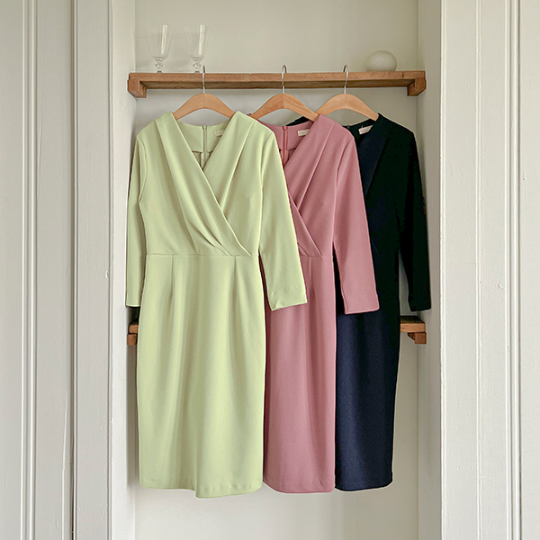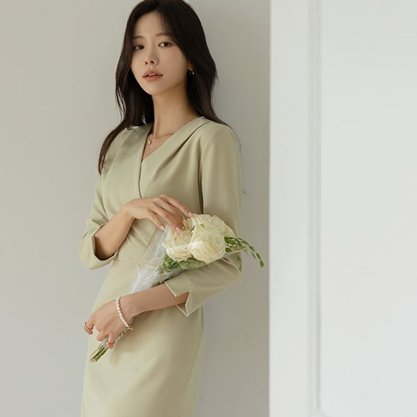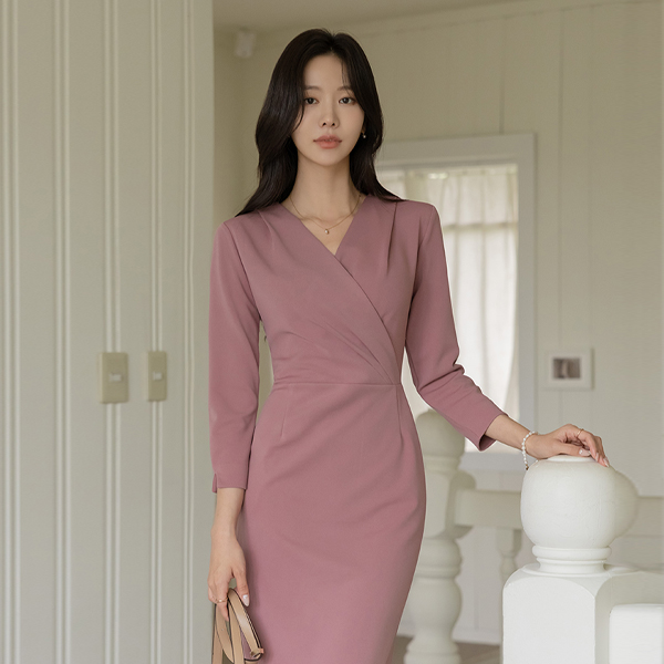劳拉 细密 弹力 细褶 裹身 风格 连衣裙
