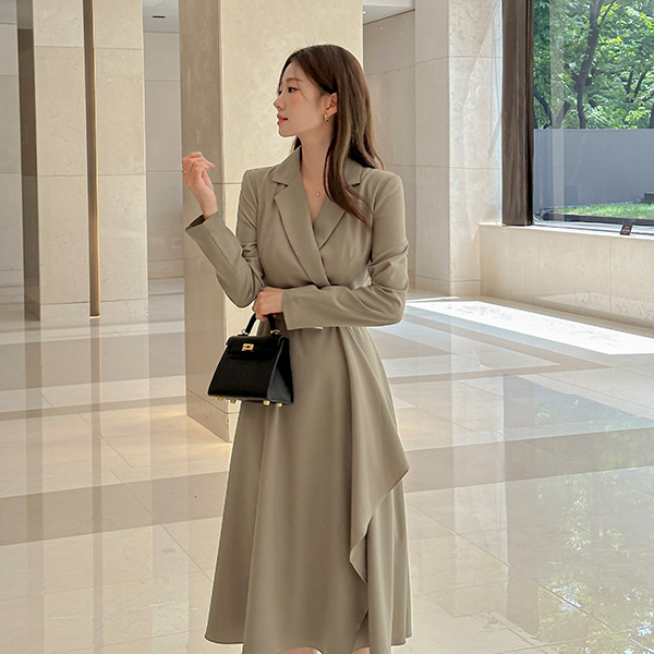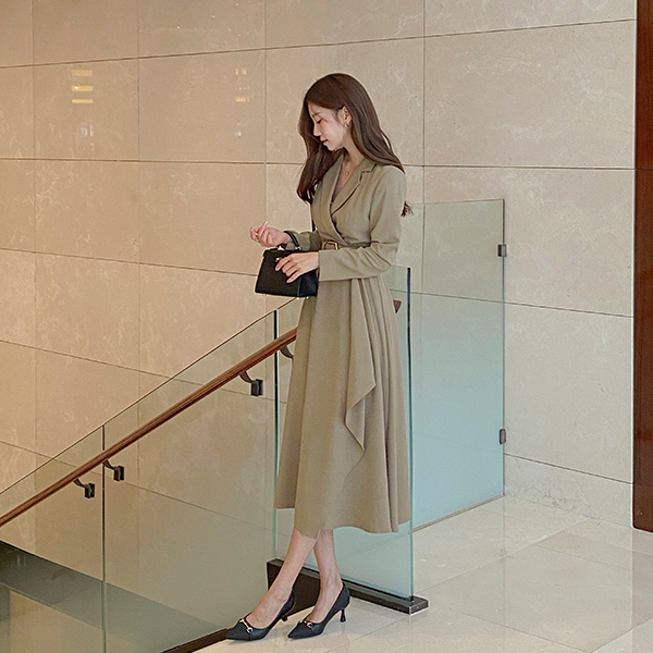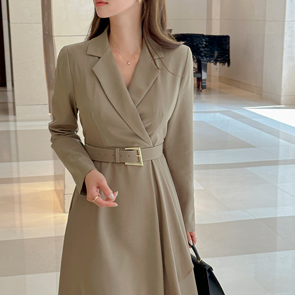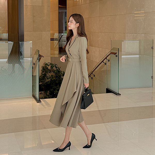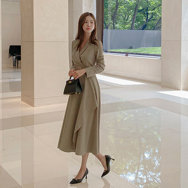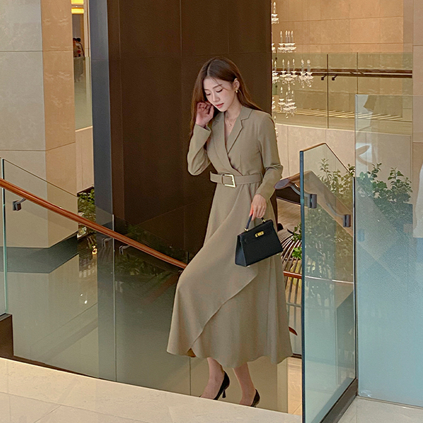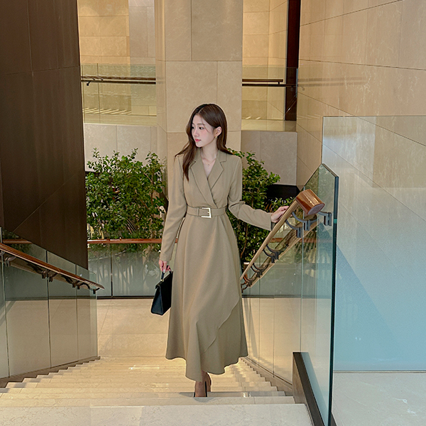 褶裥 裹身 风格 A字型 腰带 (套装) 连衣裙
