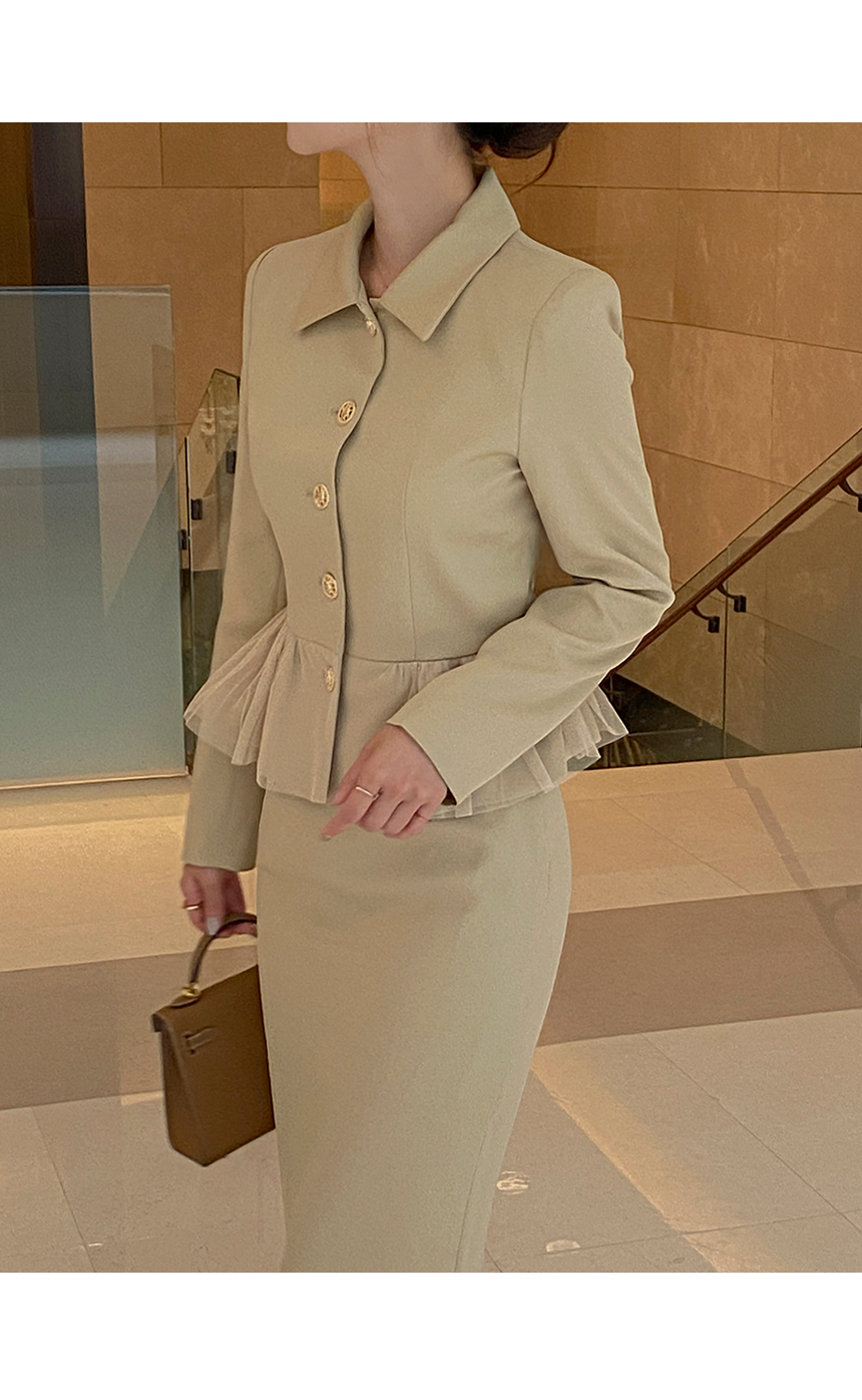 린다 褶皱 双 荷叶边 Set-up 夹克