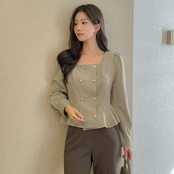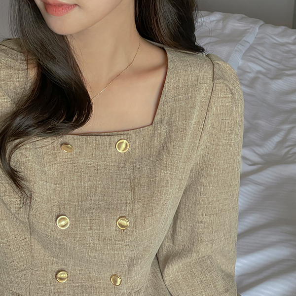엔느 黄金 扣子 荷叶边 罩衫