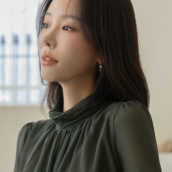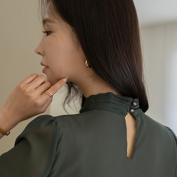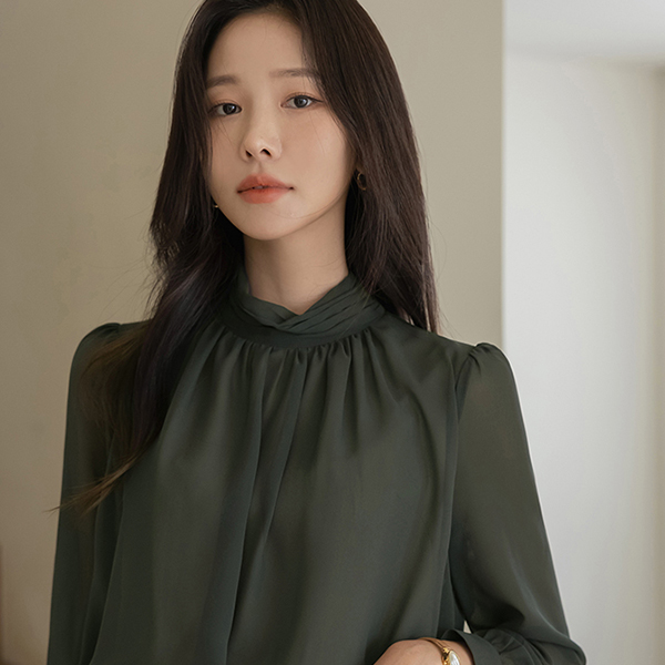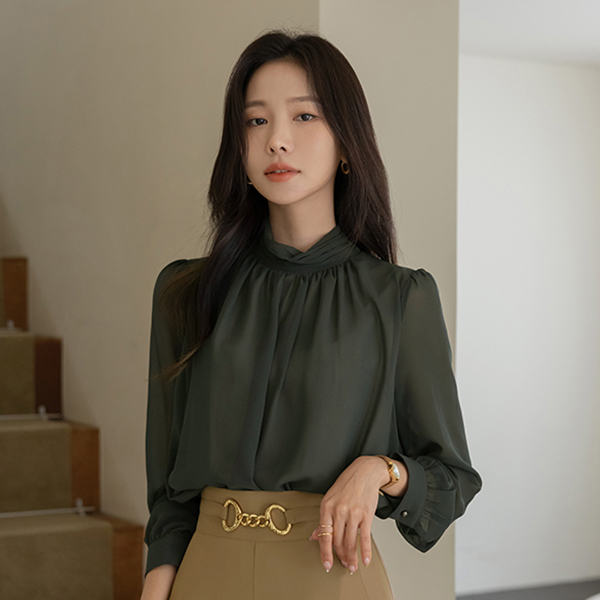 褶皱高领 二重 透视 罩衫 Ⅲ