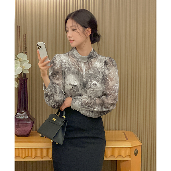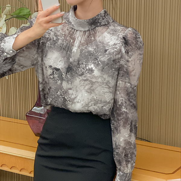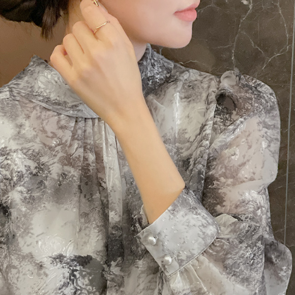 民族风 印染 图案 泡泡袖 罩衫