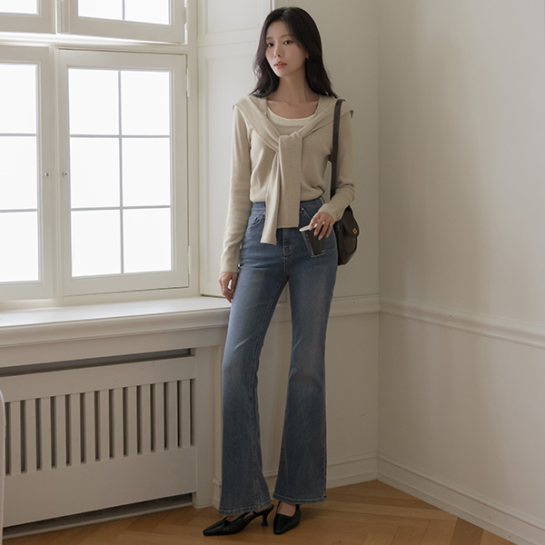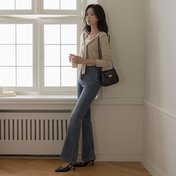 핏보장 秋季 喇叭 牛仔色 裤子