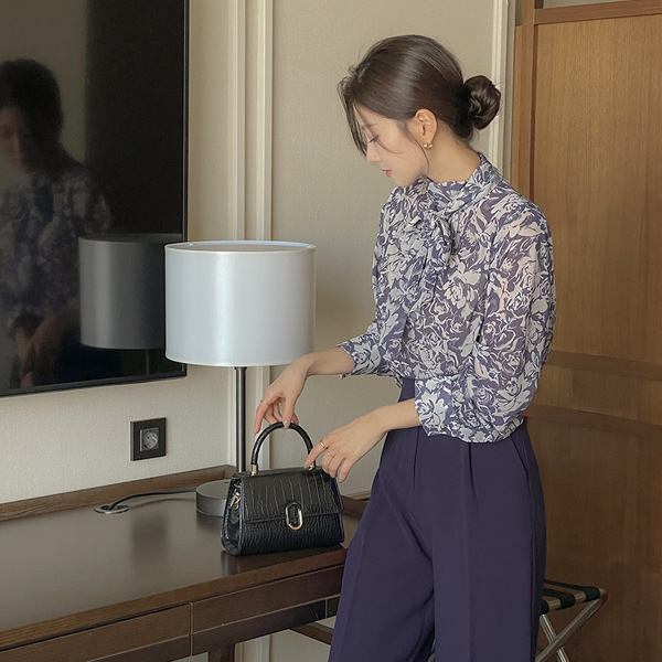 鳄鱼纹 大理石 配色 圆领 带扣 手提包