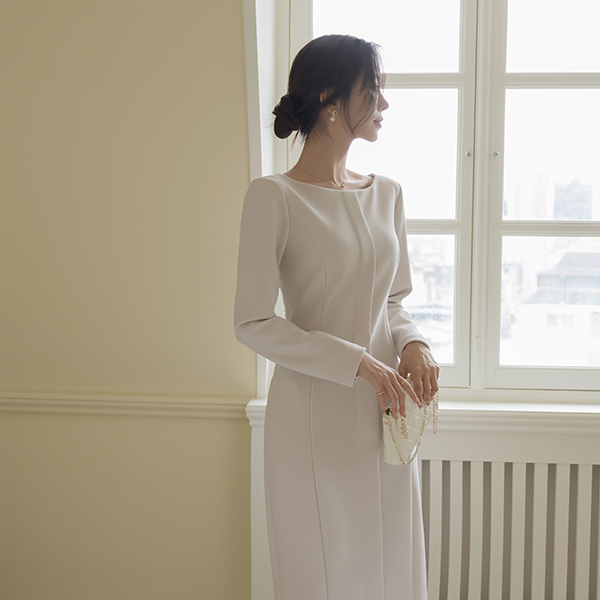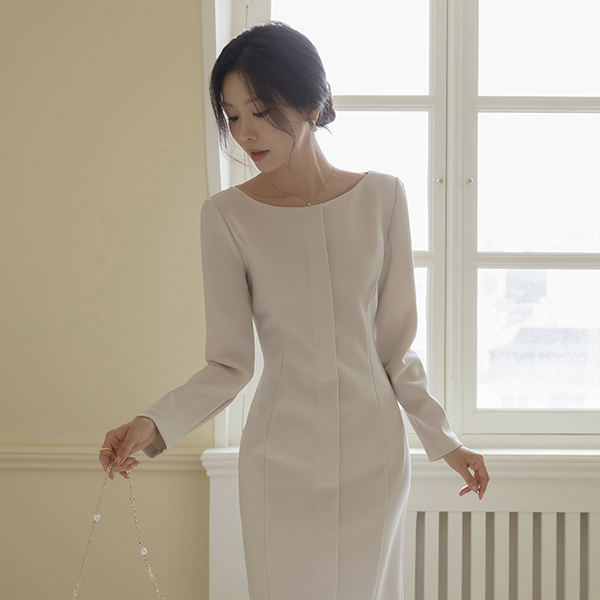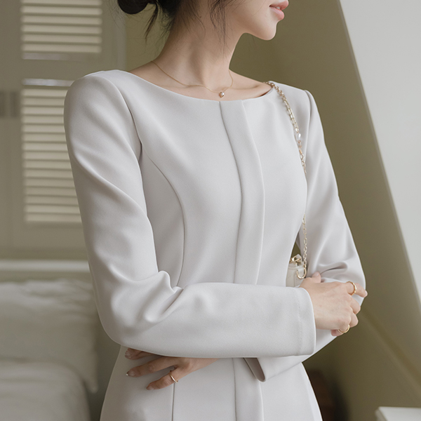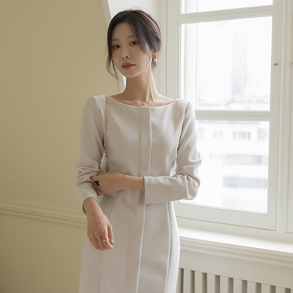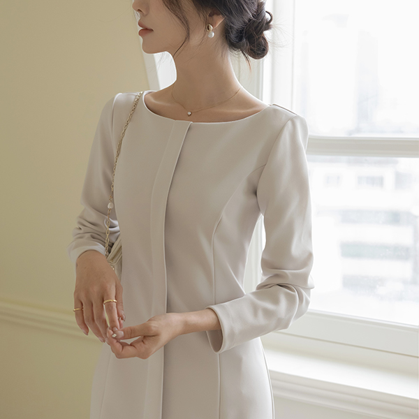 宽松 船形领 开叉 斯利姆 Cheese 弹力 连衣裙