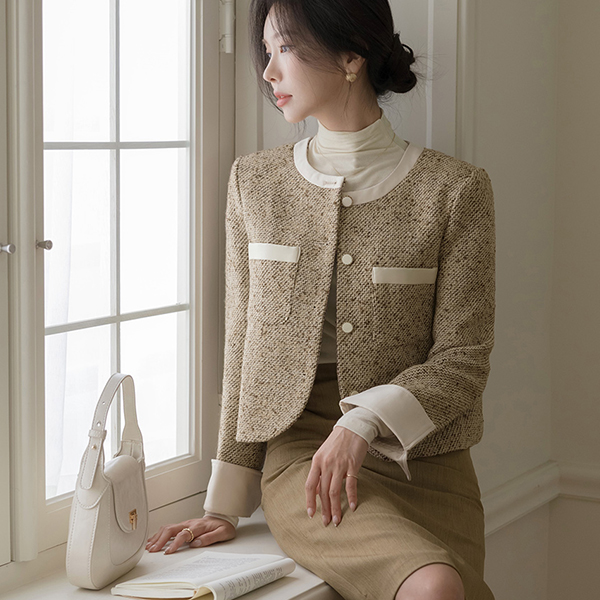 优雅 인트로 配色 点缀 粗呢 夹克