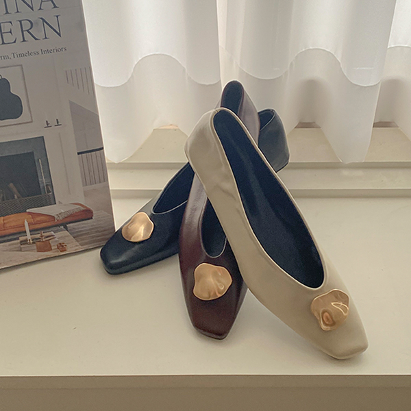 波浪 黄金 装饰 平底鞋 鞋
