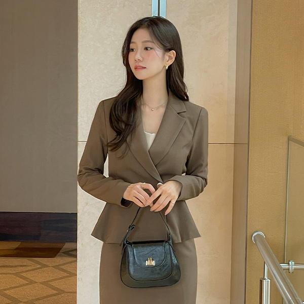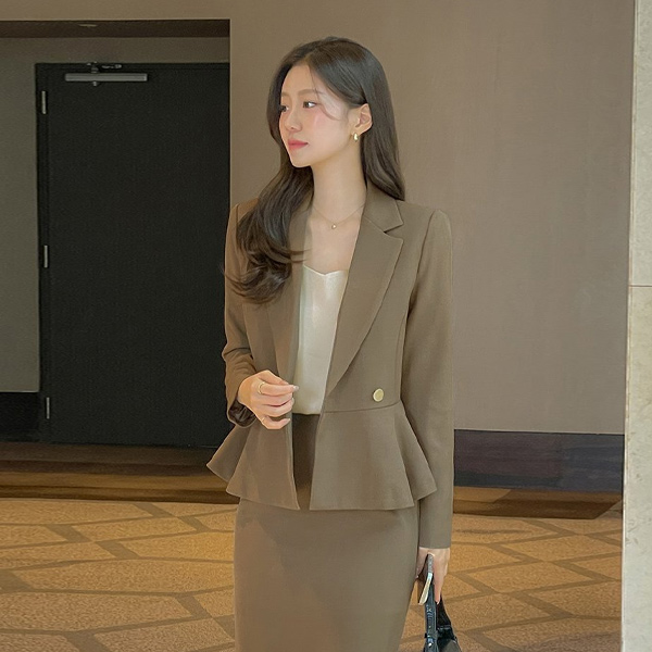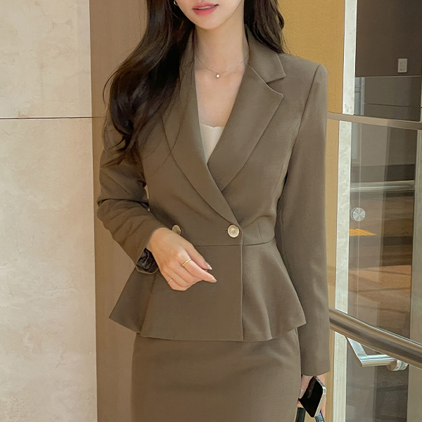 酷毙了 双 黄金 扣子 弹力 荷叶边 Set-up 夹克