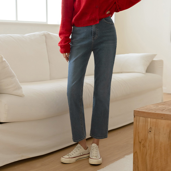 데이비 一字型 牛仔色 裤子