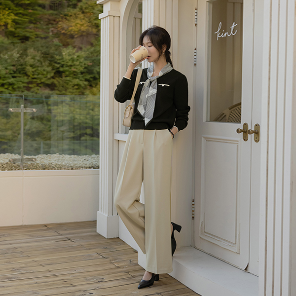 ODE 细褶 Cheese 弹力 后侧松紧带 宽松 宽松长裤