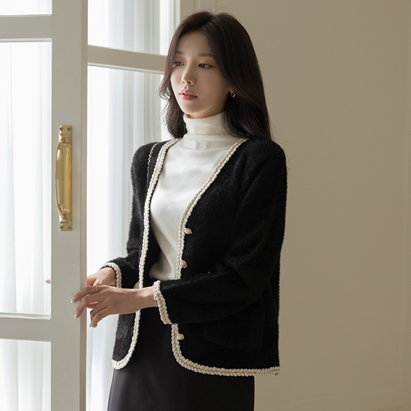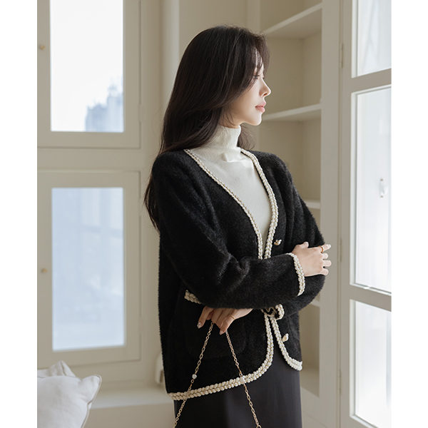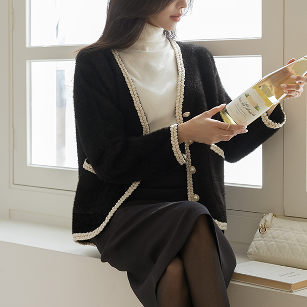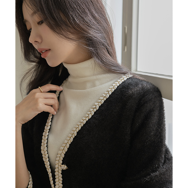 (1+1할인) 粘胶 扣子 袖 柔丝 高领 针织衫