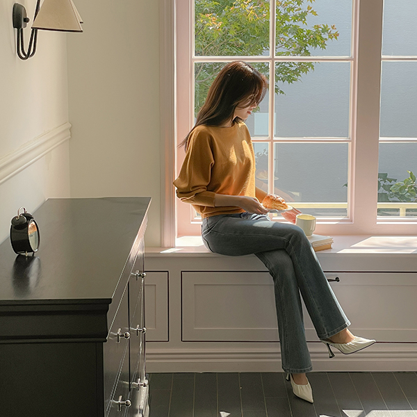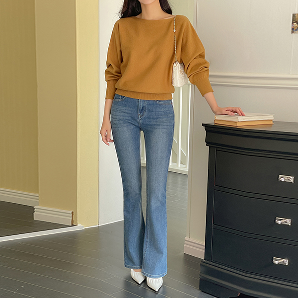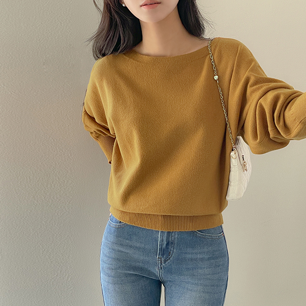 柔丝 粘胶 苗条 船形领 蝙蝠版 针织衫
