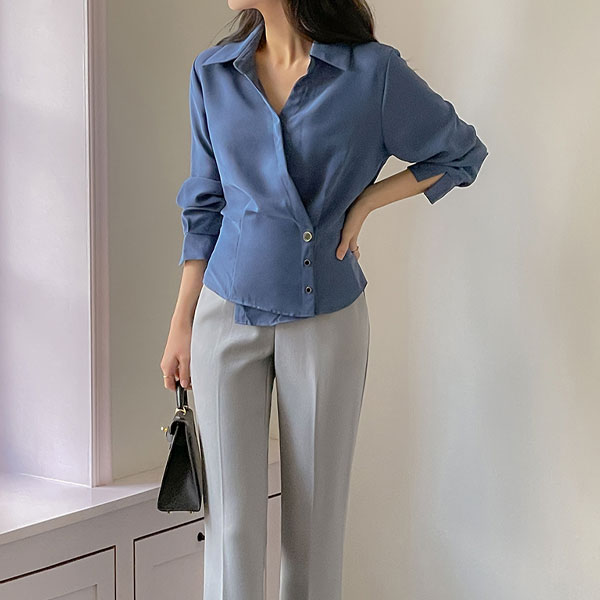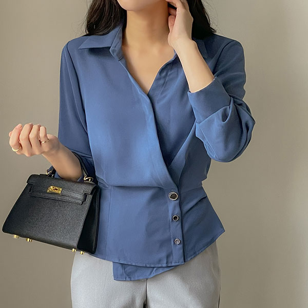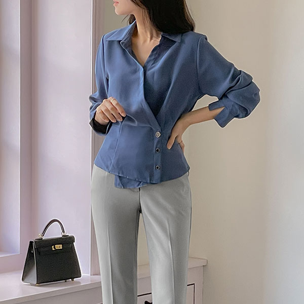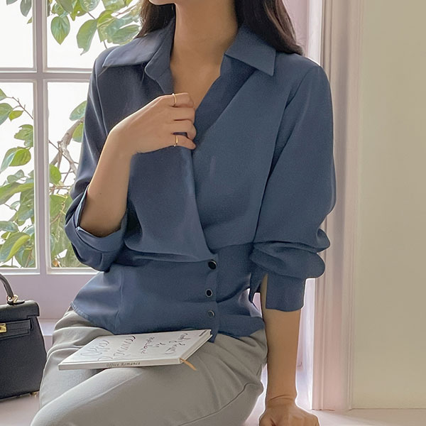 앙티브 不规则 扣子 荷叶边 罩衫
