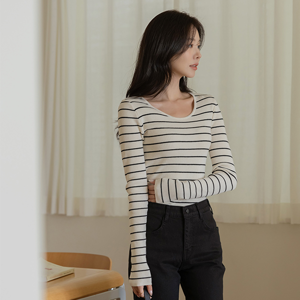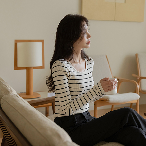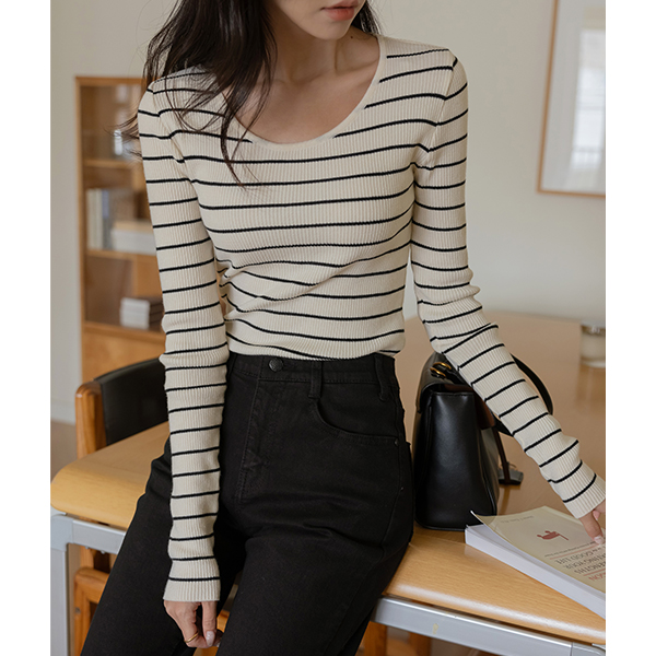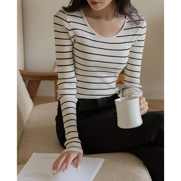 알프스 U领 横条纹 针织衫