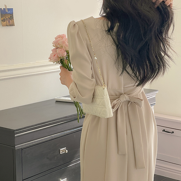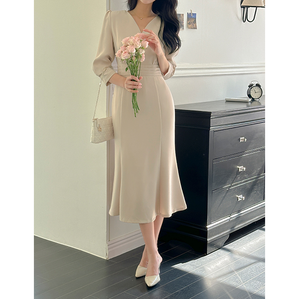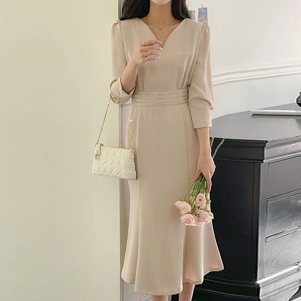 浪漫 点缀 腰头 后面蝴蝶结 美人鱼 连衣裙