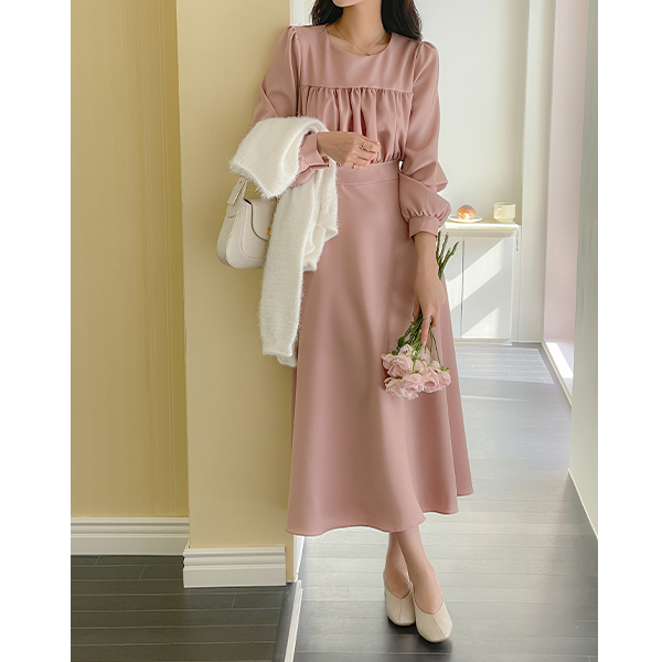 秋季 褶皱 后面蝴蝶结 A字型 连衣裙